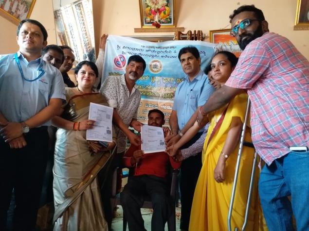 Vikalachethana Old age home, Provided food and strectures and walking stick to physically handicapped to make them physically strong.